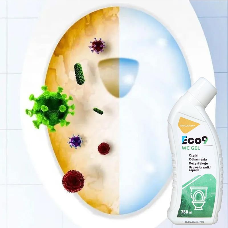 Eco9 WC GEL to nowoczesny i przyjazny dla środowiska środek do codziennej pielęgnacji toalety. Został zaprojektowany z myślą o użytkownikach, którzy poszukują skutecznych, ale bezpiecznych i naturalnych rozwiązań. Produkt zapewnia wysoką skuteczność w usuwaniu zabrudzeń, kamienia i bakterii, jednocześnie wspierając biologiczne procesy kanalizacyjne, zamiast je zaburzać.