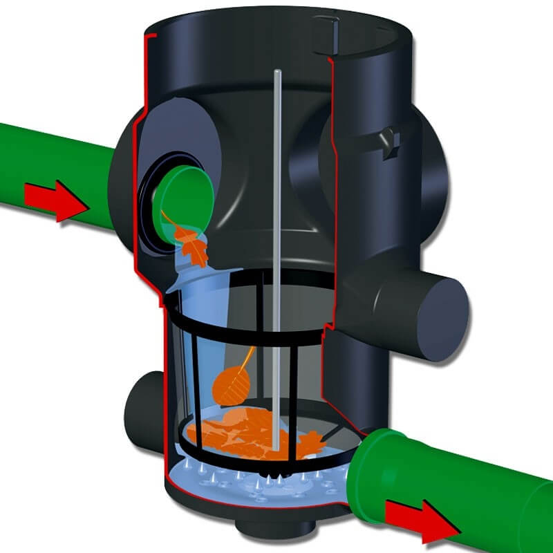 - Filtr oczyszcza wodę deszczową dzięki oczku o wielkości 0,9 mm, zapewniając najwyższą jakość wody.